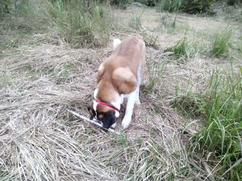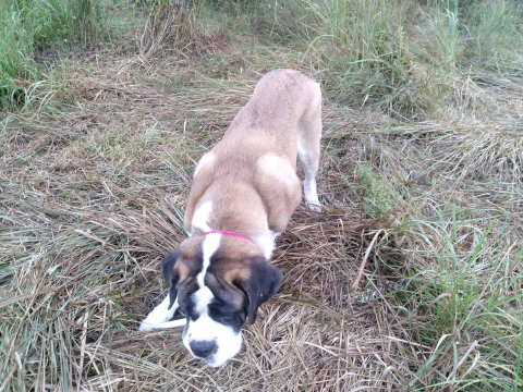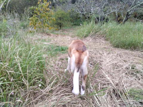 (後ろ足が長いけど、まだ細いルイス。もっと筋肉をつけなくちゃね。) |