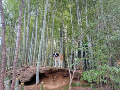 うむ〜ん、やっぱり、この竹林の中から匂いfがする。
